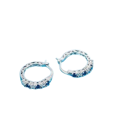 Silver Blue Crystal Hoop Earrings for Women