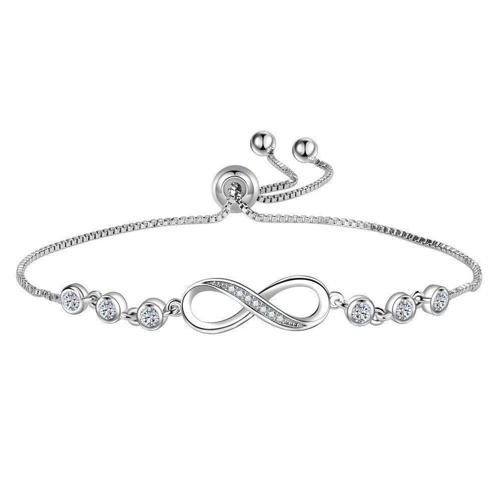 Elevate your jewellery collection with the 925 Sterling Silver Crystal Love Linked Charm Bracelet, a...