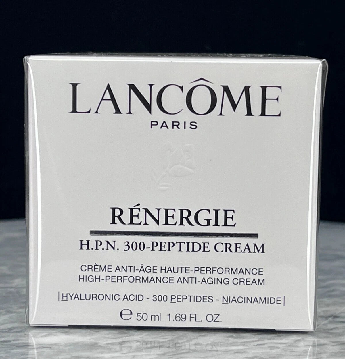 Lancôme Rénergie H.P.N. 300-Peptide Cream is a high-performance anti-aging face moisturizer designed to visibly firm, smooth, and rejuvenate the skin. Formulated with a powerful blend of hyaluronic acid, 300 peptides, and niacinamide, it helps reduce the appearance of wrinkles, improve skin elasticity, and enhance overall skin texture. The rich yet fast-absorbing cream delivers deep hydration while supporting skin renewal, leaving the complexion looking firmer, plumper, and more radiant with continued use.